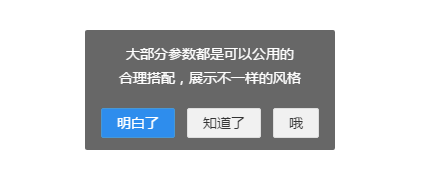 layer.msg('大部分参数都是可以公用的<br>合理搭配,展示不一样的风格', {