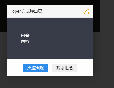 ,title: "open方式弹出层" //不显示标题栏  title : false/标题