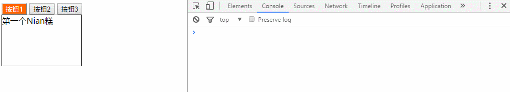 <button style="background-color:#f60; color: #fff;">按钮1</button> <button>按钮2</button> <button>按钮3</button> <div style="display:block;">第一个Nian糕</div> <div>第二个Nian糕</div> <div>第三个Nian糕</div>