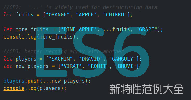 本文没有详细描述这些新特性,因为网上都已经有很多相关的介绍了。主要针对ES6 新特性收集了相关范例代码,他可以让你快速了解这个新的javascript规范。