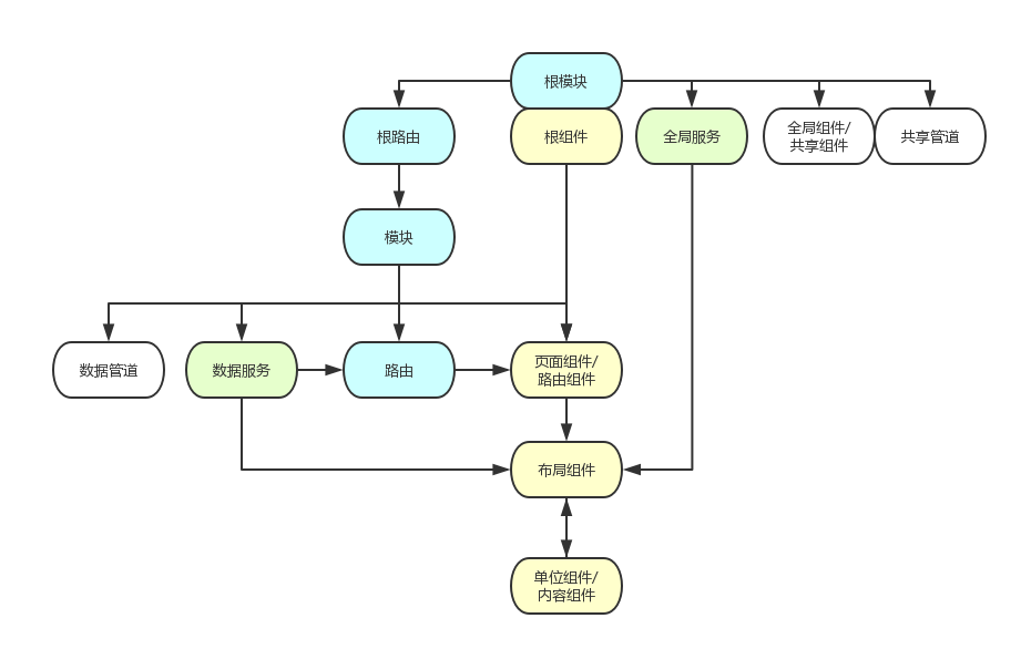 如果纯文字不够形象,笔者再给出自己画的简易版ng2超级无敌前端架构图:
