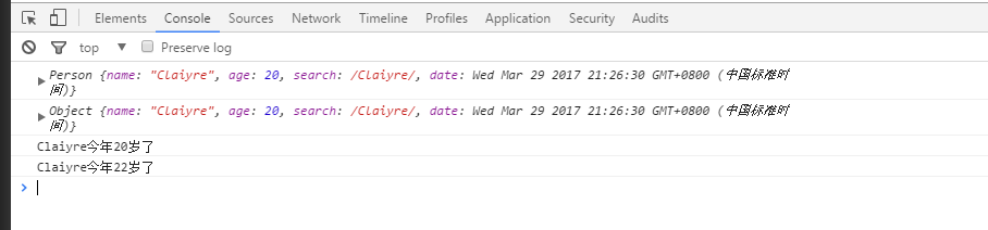 var p1 = new Person("Claiyre",20),