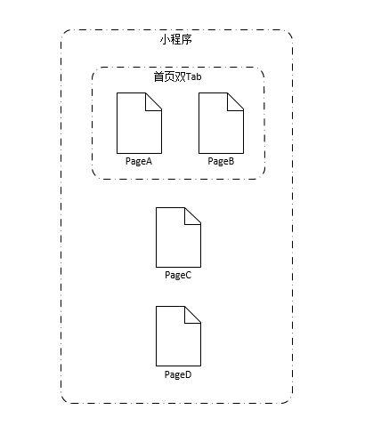 如上图,这是一个常见结构的小程序:首页是一个双Tab框架PageA和PageB,子页面pageB, PageC。