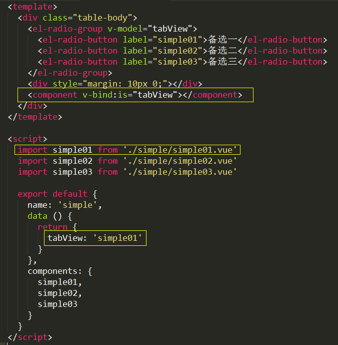 Vue 自身保留的 <component> 元素,可以将组件动态绑定到 is 特性上,从而很方便的实现动态组件切换
