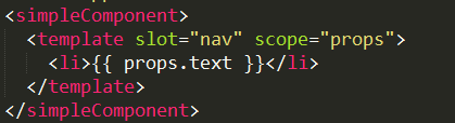 然后在父组件中以作用域 <template> 添加内容,其中 scope 是固有元素,它的值对应一个临时变量 props