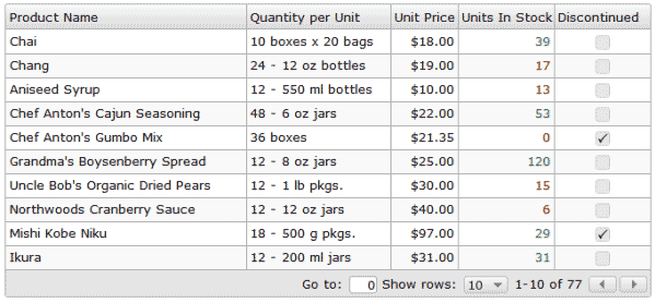 JsGrid 基于 jQuery,是一种非常轻量级的客户端数据网格。它主要支持过滤、分页、插入、编辑、排序以及删除。它更加灵活,并且允许对组件和外观进行定制。它拥有一个灵活的分页组件,还提供了像是复选框、文本、选择框等等各种各样的网格列组件。