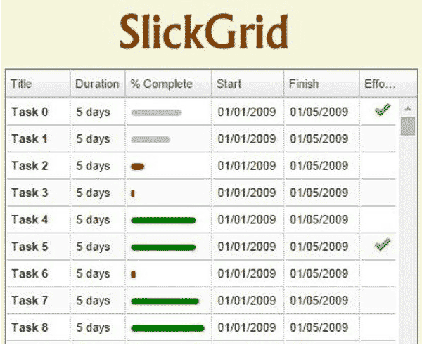 SlickGrid 是一个 JavaScript 高级电子表格组件,它的配置和学习难度相对较高。SlickGrid 具有诸如自适应虚拟滚动、极快的渲染速度、可定制、支持 jQuery UI 主题和易配置等特性,具备分组过滤、列自动调整等功能。