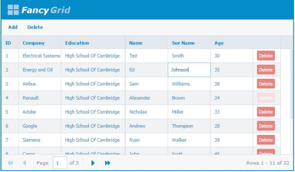 FancyGrid 是其中的一个 JavaScript 数据网格库。它是为互联网上的网页应用程序开发网格。它有一个带有服务端通信、图表交互等等功能的库,包含了过滤、Ajax 数据,REStful,AngularJS 指令、排序、分页以及许多其它的东西。它是免费的插件库,并且具有独立性。它与 AngularJS 和 jQuery 进行了集成。它包含了优雅的 API、大量的示例,详细的文档以及专业的技术支持。