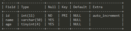 2. 创建表MySQL安装好了后,进入到数据库,创建要用到的表(如user), 结构如下