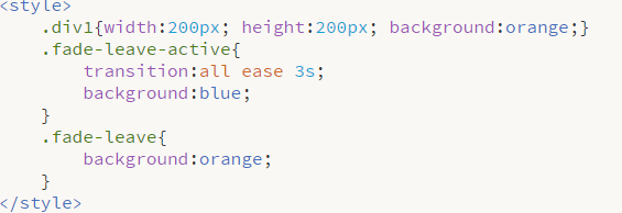 注意:这两个样式一定要定义在对应的v-enter或者v-leave之前,否则显示是无效的。