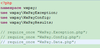 其中最主要的一个类即WxPayApi.php,加上命名空间后的形式如下,其它类的改造类似: