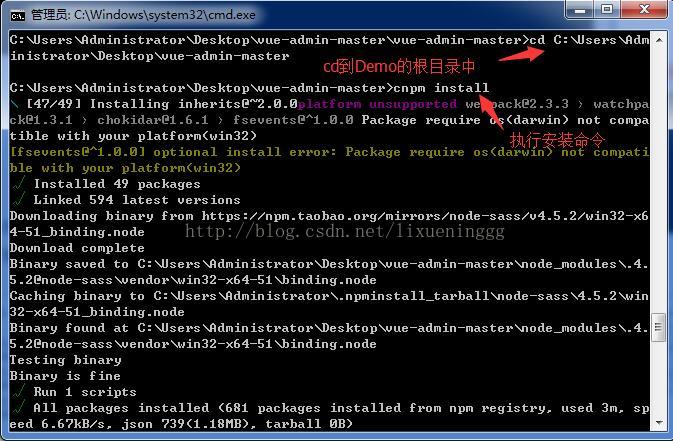 执行安装命令:cnpm install