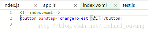 在index.wxml新建一个button组件,并使用bindtap事件绑定一个函数