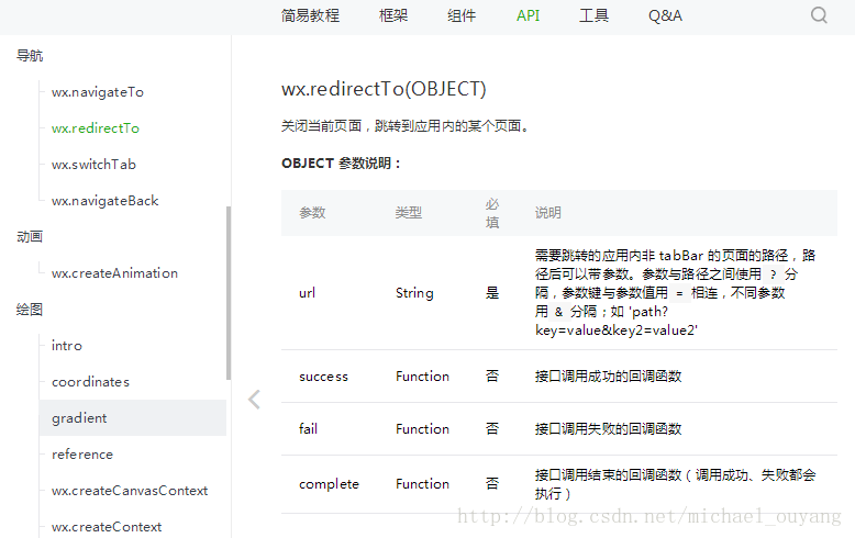 上面讲述,wx.navigateTo传入的url是跳转的页面(使用相对路径)