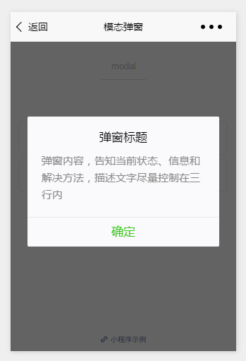 先看看官方提供的模态弹窗,供大家参考,具体内容如下