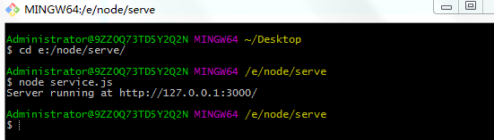 打开git命令行,输入cd e:/node/serve/
