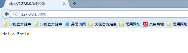 打开浏览器,访问 http://127.0.0.1:3000/,你会看到一个写着“Hello World”的网页