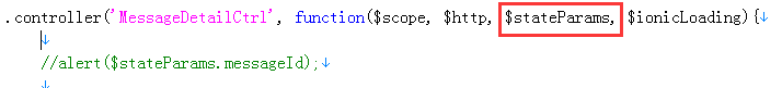 在目标页面的controller里注入$stateParams,然后 "$stateParams.参数名" 获取