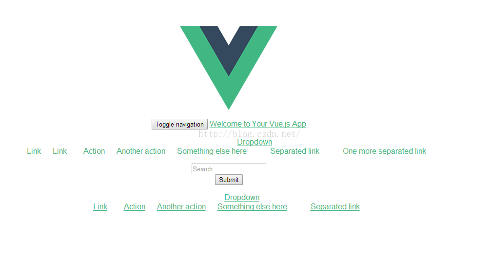 现在我们加入的bootstrap导航代码已经可以显示出来了,但是有点丑,是因为我们还没把bootstrap的CSS文件加载过来,接下来我们就是要导入CSS文件和JS文件了。