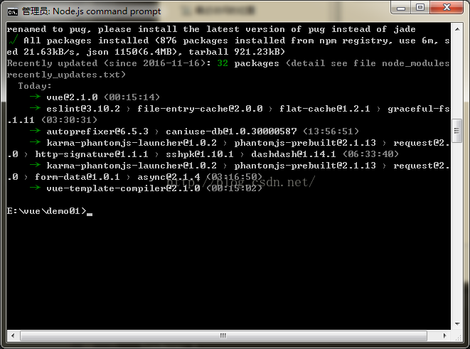 3、安装vue-cil,vue-cil是vue的脚手架工具。其模板可以通过 vuejs-templates 来查看。