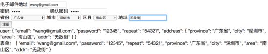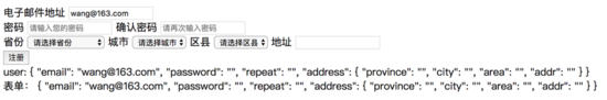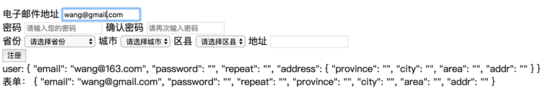 此时我们将默认的电子邮件改成 wang@gmail.com 的话,表单的值是改变了,但 user 并未改变。