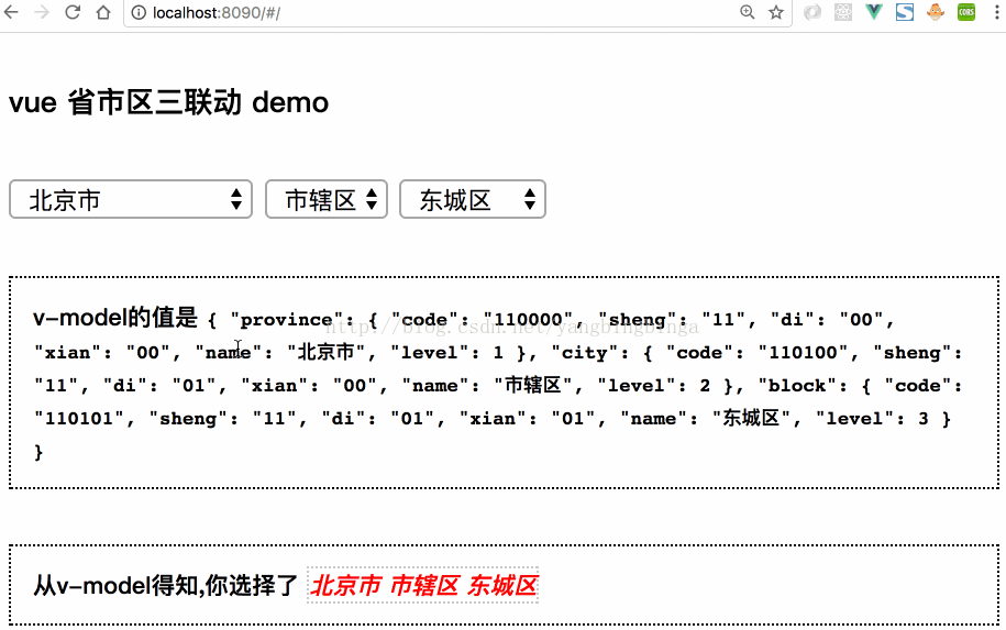 我们曾经经常会遇到需要选择省市区的需求,我们可能是找一个插件来实现,但是有了vue之后,我们自己完全可以简单的实现这个效果,并封装为独立的.vue组件,便于日后使用