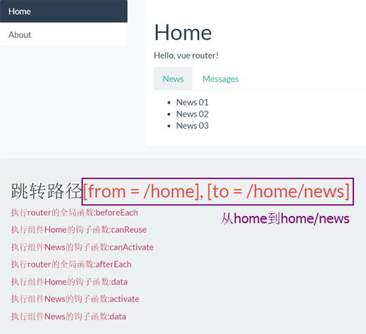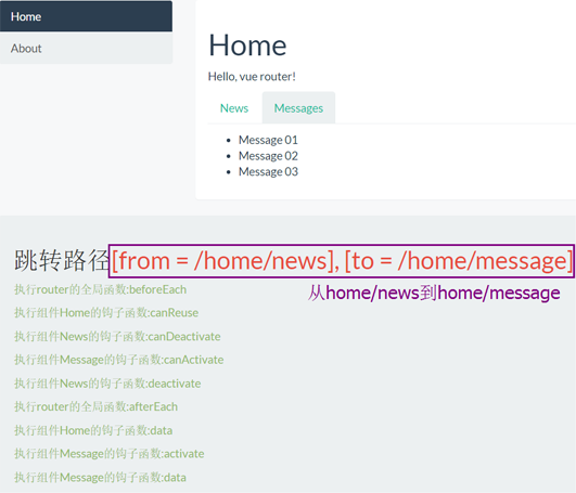 以 home/news 切换到 home/message 为例来描述各个阶段