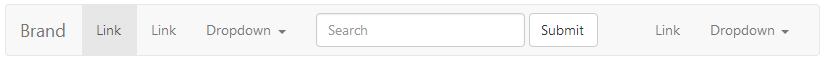 注:在上述代码中form表单即serch和submit部位,带有class="dropdown"的就是下拉菜单的区域,class="dropdown-menu"的就是下拉菜单的内容区,这些部分并非主要内容,可以删除。通过class="navbar-right/left/"可以设置该部位的导航条在总区域的左侧还是右侧。