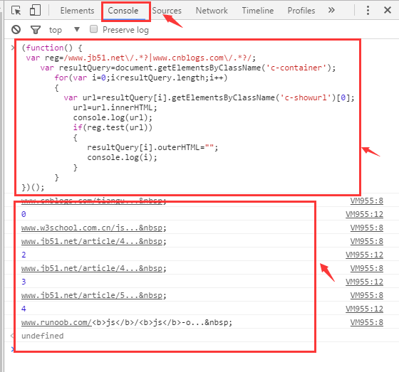 在chrome中切到百度搜索结果页面,按F12,找到 Console,然后将上面的代码粘贴到下面,回车即可执行。