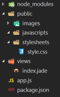 //views/index.jade doctype html html head title= title link(rel='stylesheet', href='/stylesheets/style.css') body h1= title p= content