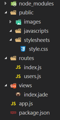 这样express就会把必要的文件夹以及代码快速生成了