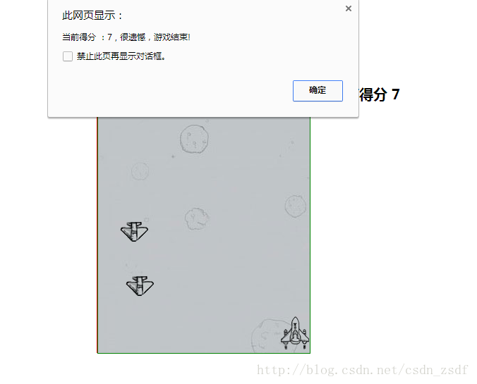 alert("当前得分 :"+count+" , 很遗憾,游戏结束!")