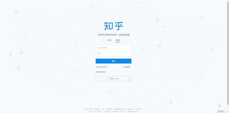 打开知乎的登录页,就可以看到其背景有一个动效,看起来好像蛮不错的样子: