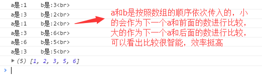 到这里我们可以得出一个总体的结论,return回去的值为一个数值,sort();方法会根据数值的正负对数组的各个部分进行排序。