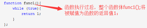 而写了return语句后,直接中断了函数,并且给函数返回了一个数值1,意思就是当函数执行后,函数体将被赋值为函数的返回值,这里会被返回1;
