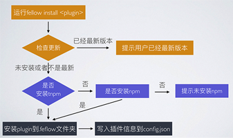 插件机制的实现包括两个部分:插件注册机制和插件发现机制。feflow要求插件必须以feflow-plugin-开头或者 generator-开头,generator作为一种特殊的插件,插件代码以npm包的形式存储和管理。运行feflow install plugin命令时,会通过npm 的 regsitry检查是否存在插件,如果存在,会检查当前插件是否是最新版本。如果不是最新版本,则提示用户是否需要更新。然后将插件下载到Home目录下的.feflow目录(Windows系统为"C:\Users\username\.feflow" 目录)下的node_modules里面,并且写入到配置文件里面。