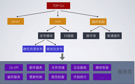 Feflow总体分为3个模块,包括parser命令行参数解析、核心命令以及插件机制。设计插件主要是为了保持整体功能的稳定,避免频繁升级;同时开放能力,支持开发者接入,完善整体的生态。