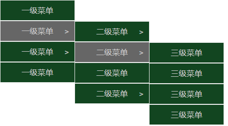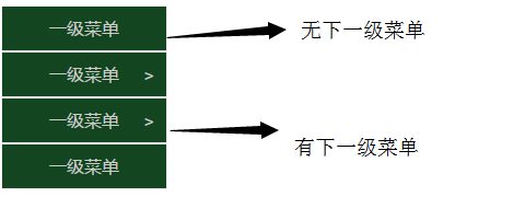 2.有下级菜单,又分为下级菜单排放位置,和在上级菜单显示类似 '>' 的符号,效果如图:
