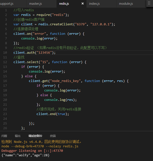 新建一个redis.js的文件,代码如下: