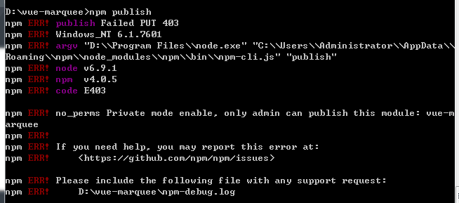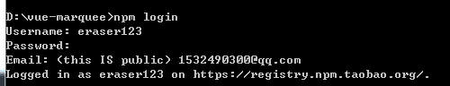 (发布的包的名字也要注意,有可能会有重名问题,像我这个组件包本来取名为vue-marquee,后面在npm上搜到已经有这个包了,不过他做的是垂直方向的跑马灯。所以我把这个为了区分这个组件包是水平方向的,改名为vue-marquee-ho)