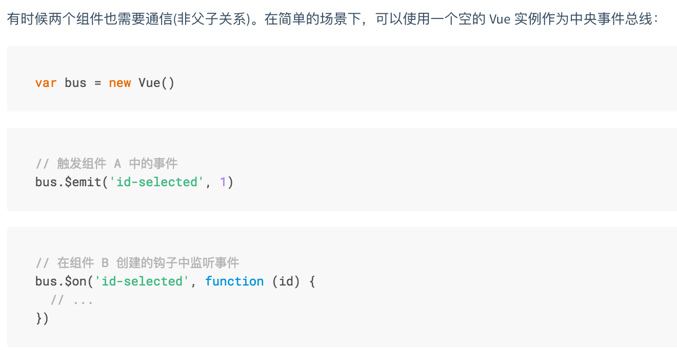 答:按照文档上的说法是专门用一个空的 Vue 实例(Bus)来做中央事件总线更加清晰也易于管理。