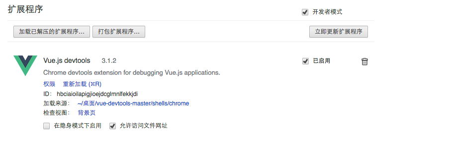 4.打开谷歌浏览器设置--->扩展程序--》勾选开发者模式---》添加工程中的shells-->chrome的内容或者直接拖动shells-->chrome,至此恭喜已经安装成功!!!