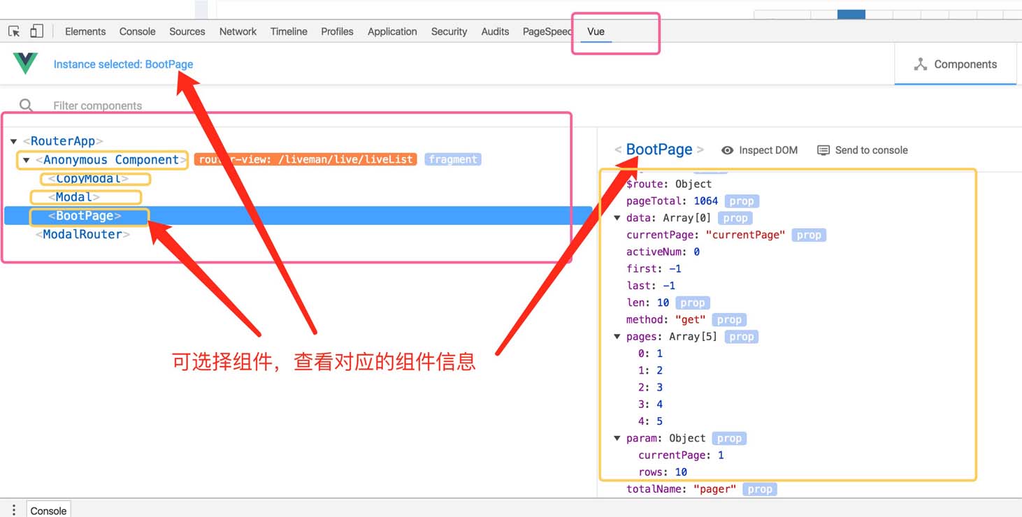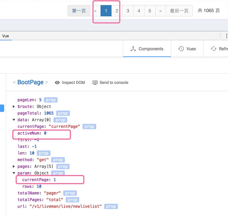 5.可操作组件查看信息变化(例如分页组件)选择第一页: