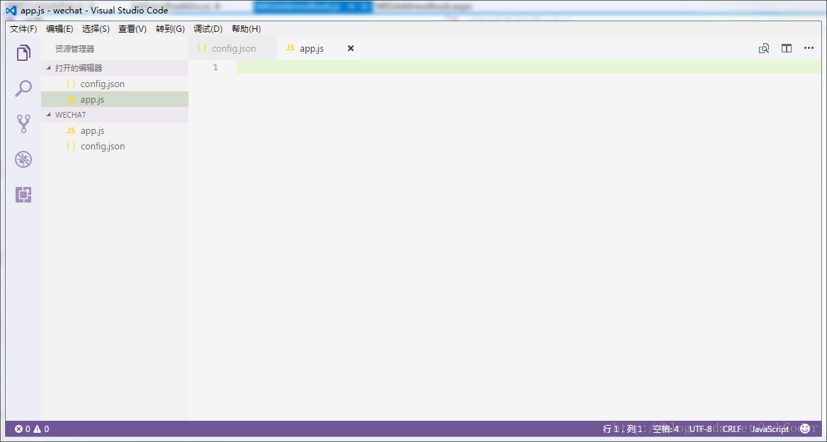 随后在文件夹中创建两个文件,一个是config.json,另一个为app.js。如下图所示: