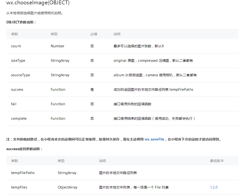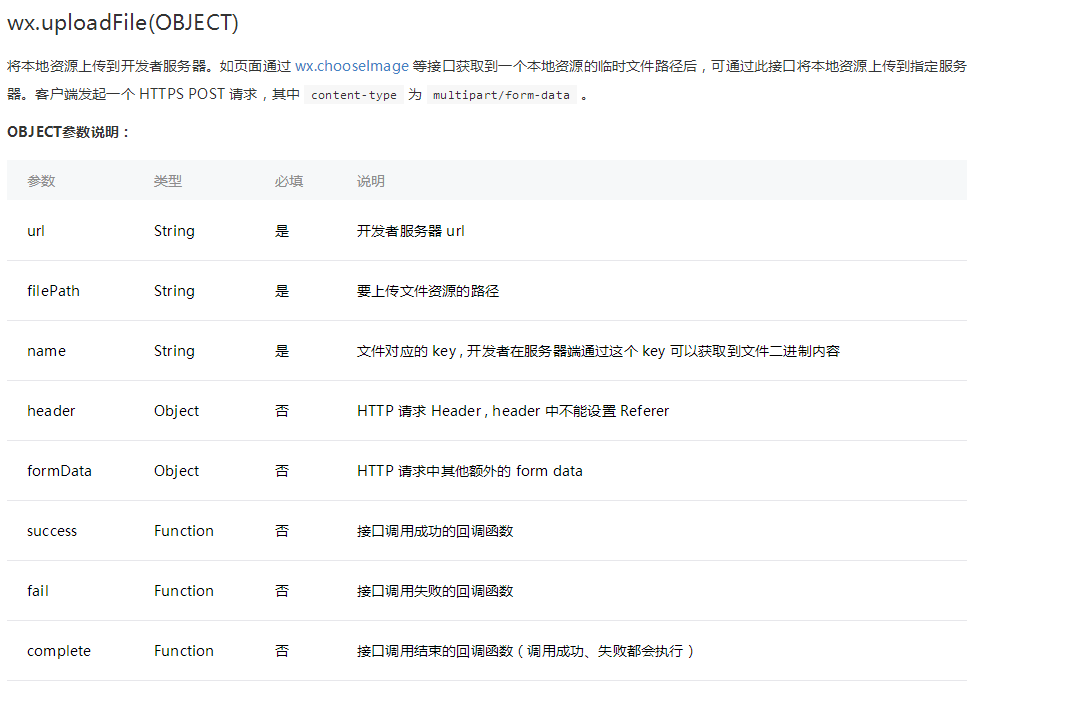 首先,我们来看一看wx.chooseImage(object)和wx.uploadFile(OBJECT)这两个个api