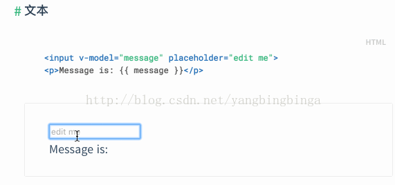我们可以参照官方文档的例子 http://cn.vuejs.org/v2/guide/forms.html#文本