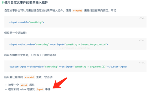 http://cn.vuejs.org/v2/guide/components.html#使用自定义事件的表单输入组件