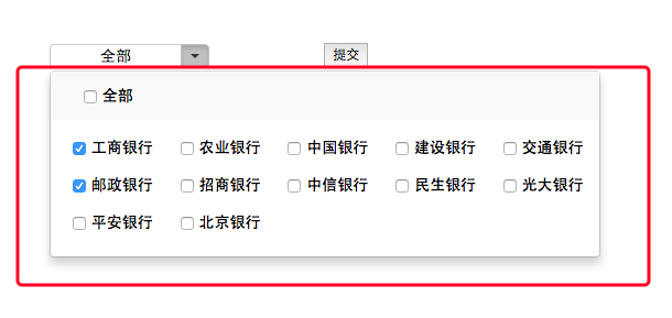 昨天用jQuery和bootstrap实现下拉菜单复选框,今天把做好的demo组合进项目里,发现有点bug,就是点击银行复选框的时候,每点一次dropdown-menu这个div会立即隐藏,这就导致每次只能选一个。