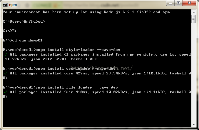 cnpm install style-loader --save-dev cnpm install css-loader --save-dev cnpm install file-loader --save-dev