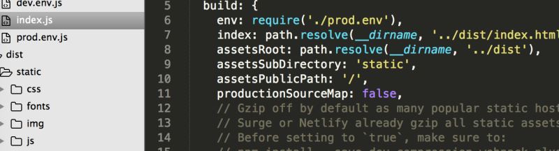 1.设置config文件夹index.js中productionSourceMap的值为false,也就是设置webpack配置中devtool为false,打包后文件体积可以减少百分之八十!!!!!!!
